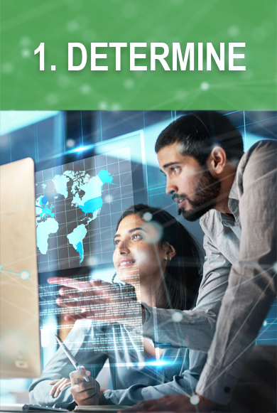 First, we Determine a simple and secure route to help your organization achieve your corporate IT initiative. Our team of experts will Determine what is currently in the environment, understanding current policies, procedures and workflows to assess your network.